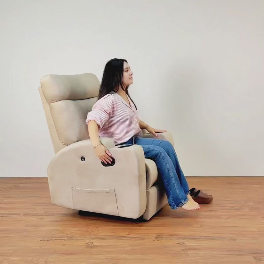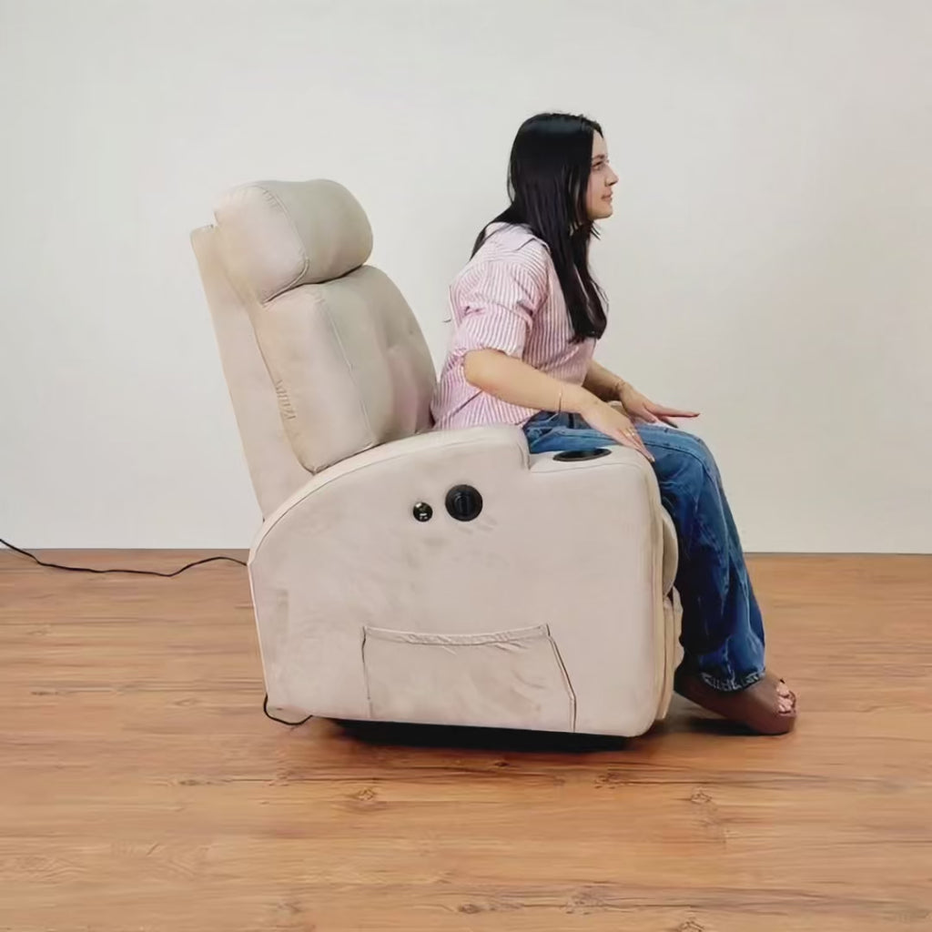 Você pode escolher o tipo de revestimento, a cor, forma de acionamento, porta copos, sistema de massagem, encosto mais alto, motor de pescoço, mesa de apoio, suporte com carregador para smartphone por indução, porta taça e bordado. Todos esses acessórios têm um valor extra separado.